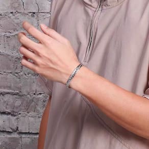 Tamanho: 4x18 cm Peso: 27 g Material: aço inoxidável Design elegante de elos achatados — Estrutura clássica de corrente Figaro com acabamento comprimido em estilo cubano, oferecendo uma silhueta refinada e minimalista para uso diário. Detalhes delicados gravados — Cada elo apresenta gravuras superficiais sutis para maior textura e profundidade, dando à pulseira uma aparência mais premium e atraente. Aço inoxidável de alta qualidade — Feito de aço inoxidável durável com propriedades anticorrosivas e resistentes a arranhões, mantendo o brilho ao longo do tempo. Leve e durável — Com 18 cm de comprimento, 4 mm de largura e 27 g de peso, ele oferece um ajuste sólido e confortável, perfeito para usar em camadas ou usar sozinho. Acessório unissex de inspiração urbana — ideal para homens e mulheres que adotam o estilo europeu limpo, serve tanto para roupas de rua casuais quanto modernas.