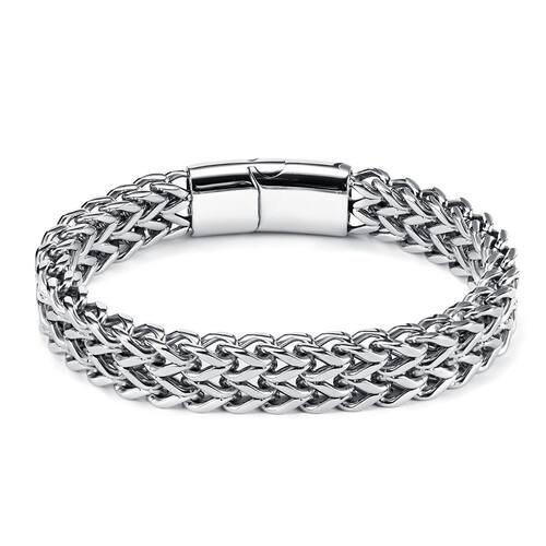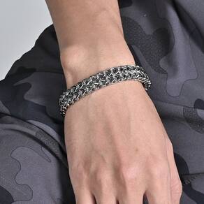 Tamanho: Largura 12 cm Peso: 55 g Material: aço inoxidável Design marcante de corrente tecida — O estilo ousado de corrente entrelaçada com polimento de alto brilho fornece uma estética masculina estruturada para o apelo do streetwear moderno. Material de aço de titânio premium — Feito de aço inoxidável com acabamento em titânio polido, garantindo excelente resistência à ferrugem, desbotamento e arranhões. Fecho magnético — Possui um fecho magnético seguro e fácil de usar que oferece conveniência e confiabilidade para uso diário. Sensação e ajuste substanciais — Com uma largura de 12 mm e peso de 55 g, esta pulseira adiciona uma sensação forte e premium sem sacrificar o conforto. Ideal para moda urbana e hip hop — Adequado para roupas de rua casuais, roupas de clube ou em camadas com outros acessórios, tornando-o uma adição versátil a qualquer estilo ousado.