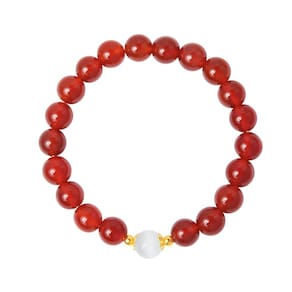 Tamanho: Diâmetro do cordão 8 mm, 18 peças Peso: 16 g Material: contas Agate Premium de 8 mm — Feita de ágata vermelha vibrante com uma peça central luminosa de pedra olho de gato, esta pulseira combina tons ricos e profundidade visual para uma aparência refinada e elegante. Design simbólico para a boa sorte — Inspirado na nova estética chinesa, o cordão branco em forma de olho de gato simboliza clareza e proteção, ideal para usar nos anos do zodíaco. Detalhes em prata S925 — acentuados com prata esterlina S925 para um toque sofisticado, adequado para peles sensíveis e uso diário a longo prazo. Ajuste elástico confortável — Projetado com cordão elástico para caber na maioria dos pulsos com facilidade, oferecendo uma experiência de uso leve, confortável e flexível. Versátil e culturalmente inspirada — Esta peça minimalista, mas culturalmente significativa, complementa as roupas do dia a dia enquanto canaliza valores tradicionais e estética moderna.
