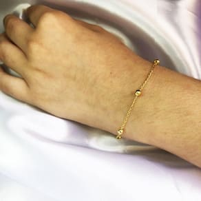 Essa pulseira é composta por uma corrente de bolinhas que irão dar um charme único ao seu look. A Pulseira de Bolinha Dourada é um item que compõe perfeitamente seu mix pessoal de joias.