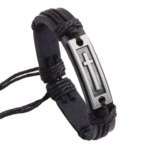 Tamanho: Diâmetro 6 cm Peso: 13 g Material: couro de vaca e símbolo de cruz simples — Apresenta uma cruz limpa e gravada em relevo em uma placa de metal retangular, representando fé e espiritualidade de forma minimalista. Construção em couro bovino genuíno — Feito de couro bovino autêntico com cordões bem tecidos, oferecendo durabilidade, conforto e aparência orgânica. Artesanato artesanal — Cada peça é feita à mão, realçando o charme rústico e tornando-a uma escolha cuidadosa para uso pessoal. Ajuste ajustável — O fecho com cordão se encaixa na maioria dos tamanhos de pulso (6 cm de diâmetro), oferecendo flexibilidade e facilidade de uso para uso diário. Estilo masculino e fiel — Uma combinação perfeita para roupas casuais, urbanas ou espirituais; ideal para homens que apreciam expressões religiosas sutis.