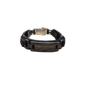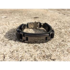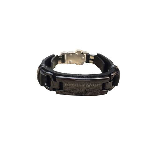 Pulseira De Couro Livrai-me Do Mal Amém Verniz Preto Contém: - 1 Pulseira Couro Ecológico Detalhe em Verniz Grafite Fecho Trava Com Regulagem Pulseira Diâmetro: 2cm Cuidados com a peça: Evitar molhar frequentemente e contato com produtos químicos perfumes e hidratantes entre outros. Marca: Bicudos Acessorios