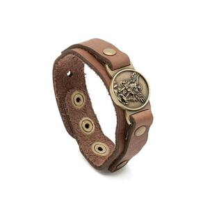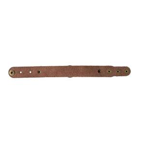 Pulseira de Couro de São Miguel, produzida com materiais de qualidade em couro marrom e metais em ouro velho.