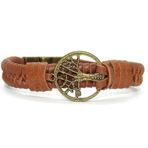 Pulseira de Couro Masculino Marrom Árvore da Vida e Fecho de Imã, ideal para combinar com outras Pulseiras. Use Acessórios Masculinos e Dê um up no seu visual