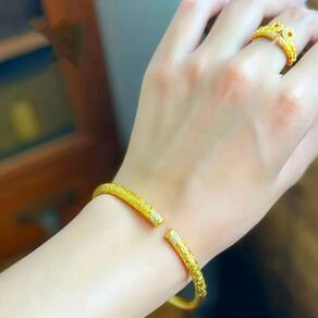 Tamanho: Largura 5 mm Peso: 30 g Material: Gold Placer Artesanato tradicional — Esta pulseira apresenta um acabamento clássico em ouro arenoso com delicados padrões Ruyi esculpidos à mão, mostrando a essência do design tradicional chinês. Material premium — Feita de placer dourado de alta qualidade, esta pulseira oferece tons dourados ricos e uma textura sólida, ideal para quem aprecia joias autênticas e duradouras. Design aberto — O design aberto ajustável permite fácil uso e remoção, adequado para a maioria dos tamanhos de pulso, mantendo um ajuste confortável. Enfeite de cristal — As duas extremidades da pulseira são adornadas com pequenos cristais cintilantes, adicionando um toque de elegância refinada à peça de estilo antigo. Estilo versátil — Perfeita para uso diário ou ocasiões especiais, esta pulseira complementa uma variedade de roupas com sua estética luxuosa e discreta.