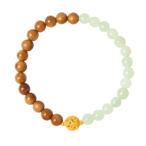 Tamanho: Diâmetro do cordão 6 mm Peso: 8 g Material: Nefrite natural Combinação de nefrite e madeira — Apresenta contas de 6 mm feitas de jade hetiano natural e madeira de faia, criando um contraste quente entre verde suave e tons terrosos ricos. Miçanga esculpida oca em prata S925 — Decorada com um pingente detalhado de filigrana prateado inspirado nos designs tradicionais de bolas bordadas chinesas, adicionando um toque estético refinado. Design equilibrado de Yin-Yang — Esse estilo meio jade e meio madeira simboliza a harmonia entre natureza e tranquilidade, tornando-o um acessório significativo para aqueles que valorizam o simbolismo cultural. Construção elástica confortável — Feita com cordão elástico durável, oferecendo um ajuste flexível adequado para a maioria dos tamanhos de pulso, ideal para uso diário. Sofisticada e minimalista — A estrutura simples e elegante da pulseira é perfeita para combinar com roupas modernas ou tradicionais, adequadas para ocasiões casuais, de escritório ou culturais.