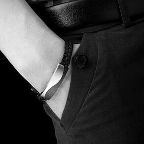 Tamanho: Largura 1,2 cm Peso: 32 g Material: aço inoxidável/detalhes em fibra de carbono PU — Apresenta uma elegante incrustação de fibra de carbono em uma placa de aço inoxidável, combinando o toque industrial com o estilo contemporâneo para um acessório masculino ousado. Pulseira de couro PU trançado — O couro PU trançado preto durável oferece flexibilidade e resistência, oferecendo um ajuste diário confortável e elegante. Fecho robusto de aço inoxidável — Equipado com um fecho dobrável seguro feito de aço inoxidável para desgaste rápido e fixação firme, evitando quedas acidentais. Aparência minimalista moderna — O contraste suave entre preto fosco e prata polida adiciona uma aparência limpa e masculina, ideal para estudantes e criadores de tendências. Versatilidade para o dia a dia — Perfeita para passeios casuais, escola ou vida noturna, esta pulseira complementa tanto o streetwear quanto os estilos de moda tecnológicos e minimalistas.