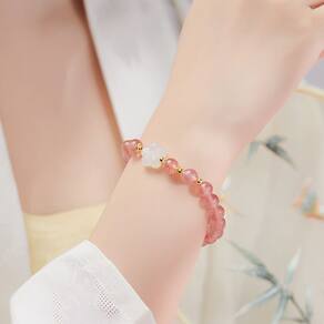 Tamanho: Diâmetro do cordão 8 mm Peso: 15 g Material: quartzo morango Grânulos naturais de quartzo de morango Feita com quartzo de morango genuíno de 8 mm, a pulseira apresenta tons suaves de rosa-vermelho com inclusões naturais, oferecendo uma energia serena e feminina. Peça central de flores de calcedônia branca Apresenta uma flor de calcedônia branca delicadamente esculpida, adicionando um elemento refinado e espiritual com um contraste equilibrado com os ricos tons de quartzo. Design estético chinês elegante Um design minimalista e elegante, enraizado no simbolismo tradicional chinês, ideal para expressar calma e beleza interiores. Ajuste elástico confortável construído com um cordão forte e flexível que se adapta à maioria dos tamanhos de pulso para uso diário fácil e confortável. Artesanato artesanal premium Cada pérola é selecionada à mão e polida para preservar seu brilho natural e sua exclusividade, tornando cada pulseira um pouco única.