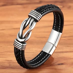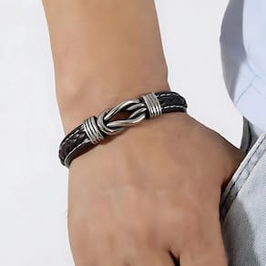A pulseira de couro trançado com detalhe central em aço inox é perfeita para homens que buscam elegância, personalidade e resistência no dia a dia. Com design robusto e acabamento refinado, ela transmite força e sofisticação, sendo a escolha ideal para complementar qualquer look do casual ao social.