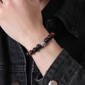 Tamanho: Diâmetro do cordão 10 mm Peso: 16 g Material: Dalbergia NigraPremium Ebony Wood Beads — Feitas a partir de Dalbergia nigra de 10 mm, essas contas de ébano pretas apresentam um tom rico e profundo e um grão natural, representando força e elegância. Peça central S999 Silver Dragon Bead — apresenta uma pérola de dragão prateada esculpida à mão que simboliza proteção, fortuna e poder — perfeita para o Ano do Dragão. Acentos naturais para olhos de tigre — Duas pedras brilhantes trazem um contraste dourado quente e acredita-se que aumentem o foco, a coragem e o equilíbrio. Design tradicional de inspiração chinesa — combina o simbolismo cultural clássico com uma estética minimalista moderna, ideal para homens que buscam herança e estilo. Durável e confortável para uso diário — A construção com cordão elástico garante um ajuste confortável e flexível, tornando-o adequado para uso diário nas estações de outono e inverno.