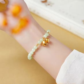 Tamanho: Diâmetro do cordão 8 mm Peso: 10 g Material: Nefrite Genuine Nefrite Jade Grânulos — Feitos de jade natural de Hetian, cada grânulo de 8 mm é finamente polido, apresentando uma superfície lisa e um brilho suave verde-branco. 999 Silver Lily Charm — Apresenta um pingente de flor de lírio do vale finamente feito de prata fina 999, adicionando significado cultural e elegância feminina ao design. Leve e confortável — pesando apenas 10 g, esta pulseira é confortável para uso diário, com uma faixa elástica que se ajusta facilmente aos pulsos da maioria das mulheres. Design oriental moderno — adota uma estética chinesa minimalista e tradicional, ideal para mulheres que apreciam um estilo leve e luxuoso e acessórios de inspiração cultural. Perfeita para todas as ocasiões — Adequada para uso casual, de escritório ou formal, esta pulseira aprimora qualquer roupa com sofisticação sutil e charme enraizados na cultura clássica do jade.