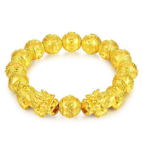 Tamanho: Diâmetro do talão 12 mm Material: Gold Placer Apresenta dois amuletos Pixius Guardian detalhados, conhecidos por atrair riqueza e afastar a energia negativa na crença tradicional. Projetado com miçangas redondas douradas de 12 mm gravadas com padrões antigos inspirados em mantras para poder simbólico. Feita com revestimento de ouro de alto polimento que confere à pulseira uma aparência ousada e luxuosa, ao mesmo tempo em que permanece leve. A construção com elástico elástico oferece um ajuste flexível e confortável para homens e mulheres. Ideal para quem procura um acessório espiritual, protetor e marcante para complementar as roupas diárias ou cerimoniais.