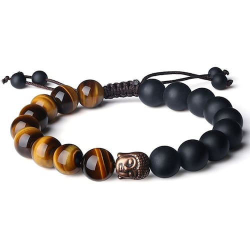 Material: olho de tigre, ônix, liga Cor: preto, marrom, bronze Tamanho do pacote: 10 cm x 8 cm x 3 cm Peso da embalagem: 0,05 kg Lista de embalagem: 1 x material da pulseira: pedra Embalagem: 1 x pulseira Esta pulseira combina o poder do olho de tigre, conhecido por aumentar a confiança e a força, com as propriedades calmantes do ônix fosco. O amuleto da cabeça de Buda simboliza sabedoria e iluminação. Projetada com miçangas lisas de tigre e miçangas de ônix fosco, a pulseira oferece uma estética equilibrada que pode ser usada diariamente ou durante práticas meditativas. Suas pedras naturais promovem tranquilidade e proteção. Com um design de corda ajustável, esta pulseira garante um ajuste confortável e seguro para a maioria dos tamanhos de pulso. Os nós fortes e a construção de qualidade o tornam durável e confiável. O pingente de cabeça de Buda adiciona um toque espiritual à pulseira, promovendo energia positiva, atenção plena e paz interior. Ideal para quem pratica meditação ou busca crescimento espiritual. Esta pulseira é um presente ideal para homens que apreciam atenção plena, bem-estar e energia positiva. Ele serve como um acessório estiloso e um símbolo significativo de força, proteção e sabedoria espiritual.