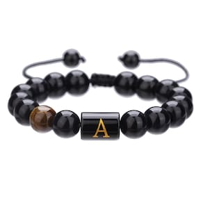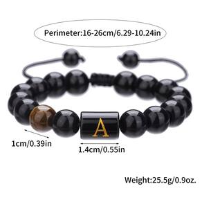 Material: pedra sintética Cor: preto, marrom Tamanho do pacote: 9 cm x 9 cm x 2,5 cm Peso do pacote: 0,05 kg Lista de embalagem: 1 x Tamanho da pulseira: longa 16-26 cm Peso: 25 g Material: pedra sintética Embalagem: 1 x pulseira Esta pulseira masculina apresenta uma combinação elegante de contas de ônix preto e detalhes em olhos de tigre, oferecendo um design sofisticado e moderno que complementa o traje casual e formal. O cordão personalizado com letra “E” adiciona um toque único e significativo à pulseira, tornando-a uma peça perfeita para quem adora joias personalizadas ou iniciais. Feitas de pedra sintética de alta qualidade, as miçangas são duráveis e polidas, proporcionando um acabamento suave que capta a luz lindamente, realçando o charme geral da pulseira. Projetada com um fecho de cordão ajustável, esta pulseira garante um ajuste confortável para a maioria dos tamanhos de pulso. O recurso ajustável facilita o uso e a retirada sem problemas. Ideal para presentear, esta pulseira é perfeita para aniversários ou ocasiões especiais. É um presente atencioso e estiloso para qualquer homem que aprecie acessórios exclusivos.