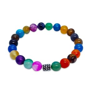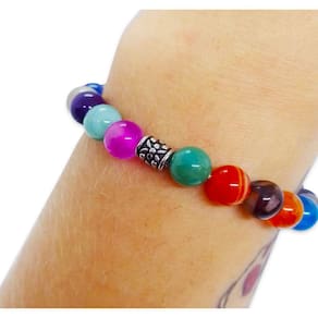 Pulseira de Pedras Naturais Ágata Colorida - Vermelho - Único