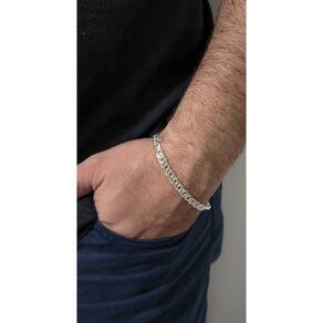Eleve Seu Estilo com a Pulseira de Prata 925 Grumet Dupla Masculina 21cm A Pulseira de Prata 925 Grumet Dupla Masculina de 21cm é a escolha perfeita para homens que buscam um acessório que não só complementa o seu estilo, mas também expressa status e sofisticação. Aqui estão 5 motivos que fazem dessa pulseira um item indispensável em sua coleção:Qualidade Incomparável: Fabricada com Prata 925, esta pulseira oferece uma durabilidade excepcional e um brilho que se mantém ao longo do tempo. A pureza da prata garante que você esteja adquirindo uma joia de alta qualidade, que resiste ao desgaste diário sem perder sua beleza.Design Elegante e Robusto: O design duplo da pulseira Grumet é conhecido por seu entrelaçado sofisticado e robusto, que combina perfeitamente com qualquer look, seja casual ou formal. É uma peça que se destaca pela sua elegância e que se adapta facilmente a diferentes estilos, tornando-a versátil para qualquer ocasião.Tamanho Ideal de 21cm: Com 21cm, esta pulseira se ajusta confortavelmente ao pulso, proporcionando um caimento perfeito. Sua medida é pensada para valorizar a masculinidade e dar destaque ao acessório, tornando-o um elemento central no seu visual.Um Investimento em Estilo: A Pulseira Grumet Dupla oferece um ótimo custo-benefício. Ao optar por essa peça, você está fazendo um investimento em uma joia que não só agrega valor ao seu estilo, mas também se valoriza com o tempo, garantindo que você não está apenas comprando um acessório, mas sim uma peça que reflete sua personalidade e status.Presente Memorável: Esta pulseira é a escolha ideal para quem deseja surpreender alguém especial. Combinando estilo e simbolismo, ela se torna um presente marcante que demonstra carinho e consideração, sendo perfeita para ocasiões como aniversários ou celebrações Confira as caracteristicas dessa linda pulseira de prata: Tamanho: 21cm Espessura: 5mmMaterial: Prata 925 Peso: 9.6g Fecho: Mosquetão
