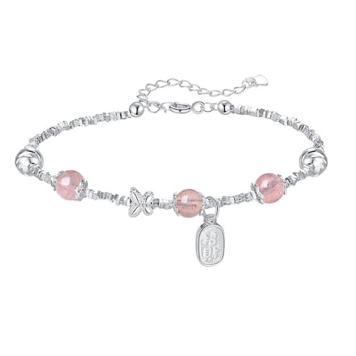 Tamanho: diâmetro do cordão 6 mm, perímetro 15+5 cm Peso: 6 g Material: pingente S925 de prata e quartzo de morango Symbolic Fortune — adornado com um delicado pingente “” (fortuna), esta peça combina significado cultural com artesanato refinado. Grânulos de quartzo de morango naturais — Apresenta contas de quartzo de morango rosa vibrantes de 6 mm, conhecidas por simbolizar amor e cura emocional. Detalhado acento de borboleta — Uma pequena borboleta prateada adiciona um detalhe animado e gracioso à composição, ideal para a estética feminina. Corrente de prata com textura fina — composta por microesferas facetadas e prata S925 para uma estrutura leve e brilhante com um pano macio. Design de ajuste ajustável — Acabamento com uma corrente extensora de 5 cm para se adequar a vários tamanhos de pulso, oferecendo versatilidade e facilidade para uso diário ou ocasiões especiais.