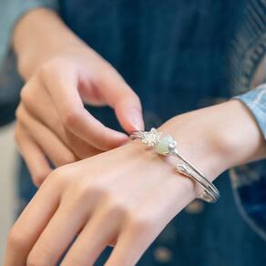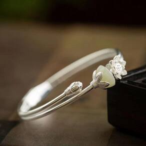 Material: prata 925 Feito de prata esterlina 925 de alta pureza com acabamento polido, oferecendo durabilidade e elegância atemporal. Apresenta uma pérola de jade branca natural combinada com uma flor de lótus delicadamente esculpida que simboliza pureza e serenidade. Projetado com um fecho seguro com mola para facilitar o uso, mantendo uma silhueta elegante e moderna. A estrutura aberta do manguito oferece conforto ajustável e um ajuste confortável em vários tamanhos de pulso. Ideal para mulheres que amam joias minimalistas com elementos espirituais ou florais, perfeitas para elegância diária ou para uma vida consciente.