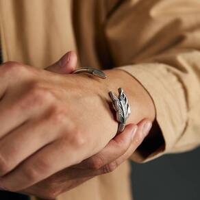 Tamanho: 4 mm de espessura Peso: 25 g Material: prata Feito de prata maciça com acabamento texturizado artesanal, garantindo durabilidade e aparência artesanal. Inspirado no motivo de flechas e penas, o design simboliza direção, coragem e liberdade. Faixa de 4 mm de espessura com uma estrutura aberta ajustável, adequada para vários tamanhos de pulso e fácil de usar. O esmalte oxidado fosco realça o apelo rústico e masculino, perfeito para um estilo ousado ou minimalista. Um acessório versátil para uso diário, estilo de moda ou como peça simbólica com fortes traços culturais.