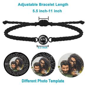 - ??Material e tamanho?A pulseira fotográfica personalizada é feita de pingente de aço titânio e corda trançada feita à mão, que é muito segura para a pele humana, não alérgica e sem manchas. Comprimento da pulseira: 14-28 cm, é ajustável, o que pode ser ajustado e fixado puxando o nó de vela.
