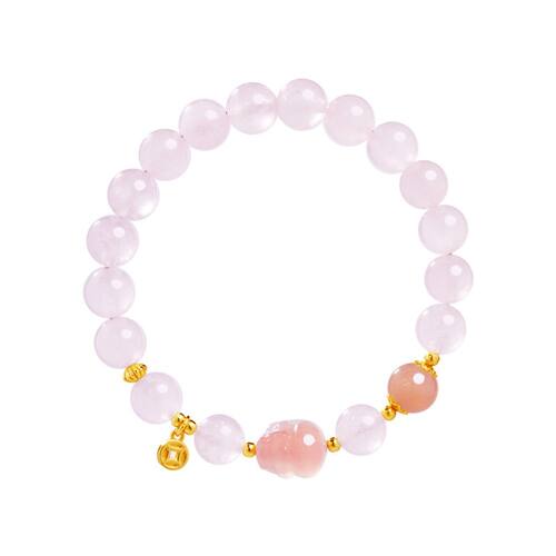 Tamanho: Diâmetro do cordão 8 mm Peso: 17 g Material: ágata Grânulos de quartzo rosa natural — Feitos de delicados grânulos de quartzo rosa de 8 mm, oferecendo tons de rosa suave que exala elegância e feminilidade. Design Pixius Guardian — Apresenta um pingente Pixius rosa detalhado, um símbolo tradicional de riqueza e proteção na cultura chinesa. Sunstone Accent Beads — adiciona um brilho quente à pulseira com peças de pedra solar natural, realçando seu apelo espiritual e visual. Nova estética de estilo chinês — combina perfeitamente o simbolismo tradicional com a elegância minimalista para um acessório refinado e culturalmente rico. Confortável e seguro — Construído em um cordão elástico durável, fácil de usar e adequado para o estilo diário ou ocasiões festivas.