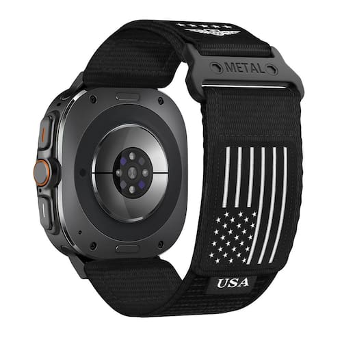 As pulseiras de nylon de tecido trançado de um clique com bandeira estrelada e listras são compatíveis apenas com Samsung Galaxy Watch 7 ultra de 47 mm. O design da pulseira alargada (largura é de 30 mm) é mais adequado para Galaxy Watch Ultra. Observação: esta pulseira esportiva sem lacunas não é compatível com Samsung Galaxy Watch 7 6 5 4 FE 3 de 40 mm/44 mm/45 mm/42 mm/43 mm/46 mm/Galaxy Watch 46 mm. mm/Galaxy Gear/ativo, Ticwatch Pro.