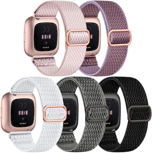 -?Várias cores?As faixas elásticas DaQin para pulseiras Versa 2 femininas e masculinas estão disponíveis em uma variedade de cores, permitindo que você escolha a faixa perfeita para combinar com seu estilo e roupa. Um pacote de cinco contém uma variedade de cores, como preto clássico, rosa rosa ou roxo esfumaçado, para se destacar. Eles também são um excelente presente para sua família e amigos, perfeito para o Natal, Ação de Graças, aniversários e outros festivais