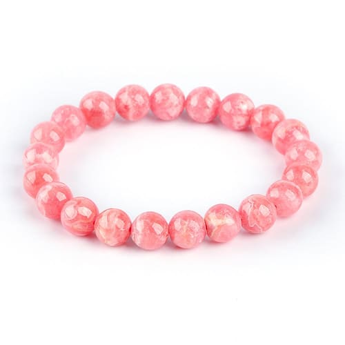 Tamanho: Diâmetro do cordão 9 mm Material: Sun Stone As contas de rodocrosita natural apresentam contas redondas de 9 mm feitas de rodocrosita autêntica, conhecida como a pedra nacional da Argentina e apreciada por seus impressionantes padrões de mármore rosa e branco. Símbolo de amor e cura Muitas vezes chamada de “Rosa Inca”, acredita-se que essa pedra preciosa promova equilíbrio emocional, amor próprio e atraia relacionamentos positivos. Acabamento elegante com brilho gelado As miçangas exibem uma textura gelada e translúcida com veios internos naturais, criando um efeito visual luxuoso e único. Ajuste elástico e confortável Construída com um cordão elástico durável, esta pulseira se adapta facilmente à maioria dos tamanhos de pulso, oferecendo conveniência e conforto sem nenhum fecho. Ideal para uso diário Uma escolha perfeita para mulheres que apreciam joias de pedra espiritual e natural com beleza estética e profundidade simbólica.