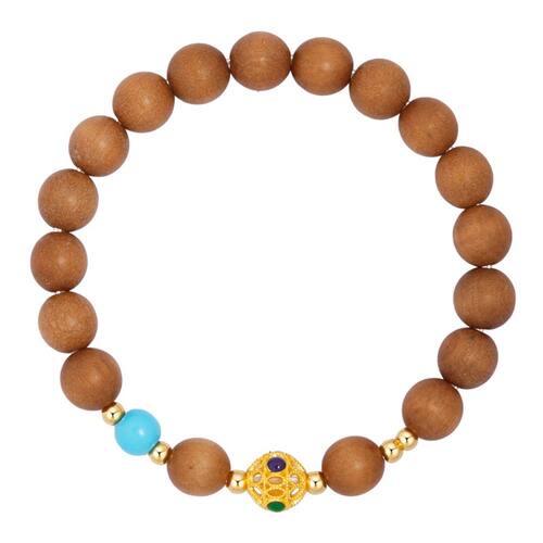 Tamanho: Diâmetro do cordão 8 mm Peso: 7 g Material: contas de sândalo natural Massaranduba — Apresenta contas redondas de 8 mm feitas de madeira de Massaranduba, apresentando um acabamento macio fosco com tons quentes de marrom avermelhado e grão natural. Design 999 Silver Lucky Bead — Adornado com um talão dourado com incrustações multicoloridas e gravura floral simbólica, inspirado em elementos tradicionais da fortuna chinesa. Estética minimalista para mulheres — Projetada para uma aparência feminina refinada, combinando contas de madeira simples com um toque de cor e charme prateado, criando uma sensação premium. Ajuste leve e confortável — Com apenas 7 g de peso, esta pulseira usa um cordão elástico para oferecer conforto fácil de calçar, cabendo na maioria dos tamanhos de pulso para uso diário. Elegância de estilo chinês moderno — Uma combinação perfeita de design limpo e inspiração oriental, adequada para apresentações ao vivo, lojas de butiques ou moda cotidiana com um toque cultural.