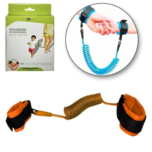 Pulseira de segurança infantil anti-perda - guia de pulso - 1,5m Nos dias de hoje, temos que prestar atenção em várias coisas ao mesmo tempo, principalmente quando se tem mais de uma criança para tomar conta ao mesmo tempo. Em situações que fogem da nossa rotina do dia a dia como em viagens. Com o cordão de segurança para pulso, você terá a criança sempre próxima de você sem o risco de se perder. Essencial para a segurança ao viajar, em aeroportos, shopping center, etc. Pode evitar que o bebê acidentalmente atravesse ou corra para locais não seguros como ruas e avenidas. Possui duas partes para serem presas nos pulsos tanto da criança quanto do adulto com proteção de tecido para não machucar e fechamento com fitas aderentes. A extensão é feita em aço com formato de espiral e proteção de plástico para não machucar em contato com a criança. Dando total flexibilidade e mobilidade para a criança enquanto estiver em uso. Idade aplicável: 1 à 8 anos. Material principal: fio de aço inoxidável super resistente; pano de algodão; plástico expandível; Máximo comprimento: 1,5m. Tamanho aproximado da pulseira 1,5m Tamanho aproximado da caixa a:18xl:14xp:4cm Peso aproximado: 100g Tipo de produto: pulseira de seguranca anti-perda infantil mb toys Cor: laranja / azul de acordo com disponibilidade Composição: plástico, tecido adesivo, tecido com espuma Marca: Mb Toys Ean: 7908429318115
