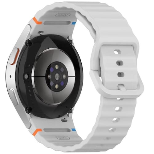 Pulseira em silicone esportivo com textura macia, ajuste confortável e seguro. Estrutura à prova d'água e design perfurado para circulação de ar. Tamanho M-L.Tipo