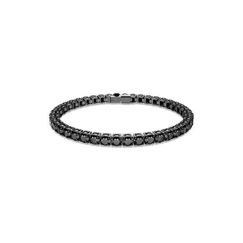 - Itens entregues: (1) pulseira de tênis Swarovski Matrix com pedras pretas de corte redondo em uma configuração com acabamento de rutênio, tamanho M, completo com caixa de pulseira Swarovski