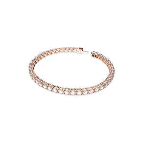 Swarovski Pulseira de tênis Matrix, Zircônia cúbica, Zircônia cúbica - Medidas: Comprimento 16 cm, Largura 1/20.3 cm - Um mundo de maravilhas o aguarda: envolva seu pulso em joias vibrantes com esta pulseira de tênis deslumbrante, com uma fileira de pedras redondas e transparentes em uma pulseira com acabamento em tom de ouro rosa, para um visual chique e elegante - Versátil e atraente: um design clássico e atemporal que combina cristais transparentes deslumbrantes que refletem lindamente a luz com metal brilhante com acabamento em tom de ouro rosa, para uma peça sedutora - Elegância sonhadora: use esta pulseira brilhante com outras peças da coleção Matrix Tennis ou apresente-a como um presente romântico para aquela pessoa especial em sua vida - Projetado para durar: as joias Swarovski mantêm seu brilho quando práticas de cuidados simples são observadas; remova antes de entrar em contato com água, loções ou perfumes e polir com um pano sem fiapos - Itens entregues: (1) Pulseira de tênis Swarovski Matrix com cristais redondos e transparentes em uma pulseira com acabamento em tom de ouro rosa, tamanho M, completa com caixa de pulseira Swarovski