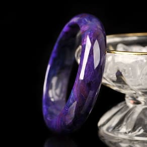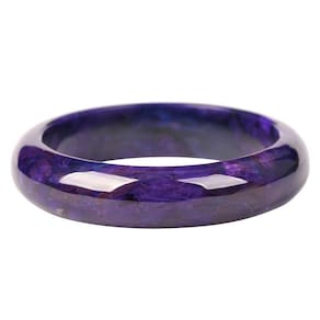 Tamanho: Diâmetro 58-60 mm Material: Jade Striking Deep Purple Color — Inspirada na rara pedra sugilita, esta pulseira apresenta tons roxos ricos e saturados com mármore natural, oferecendo uma aparência ousada e única. Acabamento brilhante polido — A superfície é habilmente polida até obter um brilho brilhante, realçando a profundidade e a beleza dos tons de roxo, garantindo uma sensação suave e confortável na pele. Design redondo tradicional — Com um diâmetro de 58—60 mm e espessura equilibrada, a pulseira mantém uma silhueta atemporal que complementa a estética tradicional e moderna. Material inspirado no Sujishi — Feito com pedra semelhante a jade que lembra a Sujishi (), conhecida por sua forte saturação de cores e apelo artístico no artesanato cultural de joias. Estilo confiante e elegante — Ideal para mulheres que preferem peças ousadas e elegantes, esta pulseira adiciona um toque de personalidade e charme espiritual a qualquer guarda-roupa ou ocasião.
