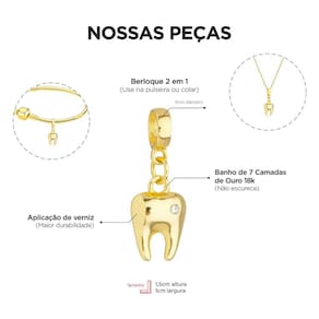 MODELO: Pulseira da profissão odontologia banhada com 7 milésimos de ouro 18k.