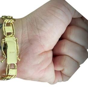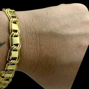 Pulseira Dubai 10mm Banhado a Ouro 18K Marca 750 Detalhes do Produto: Material: ligas metálicas de alta qualidade, especialmente tratadas para fixação e absorção do ouro, com acabamento em verniz protetor. Aparência: visual idêntico ao ouro maciço. Produção: artesanal, com atenção meticulosa aos detalhes. Banho: 10 camadas espessas de ouro 18k, finalizadas com verniz antialérgico . Elos: soldados varia conforme o modelo . Pedras: zircônias brilhantes cravejadas quando aplicável . Tamanhos Disponíveis: Cordões Masculinos: 70cm padrão e 60cm sob consulta/Pedido Via Chat . Cordões Femininos: 50cm padrão e 45cm sob consulta/Pedido Via Chat . Pulseiras: 21cm padrão ; tamanhos de 18cm a 23cm sob consulta/Pedido Via Chat. Pingentes: conforme imagens; consulte para mais detalhes via chat. Espessuras Recomendadas para Cordões / Pingentes: P: 1mm a 4mm M: 4mm a 8mm G: 6mm a 13mm Gg: 12mm a 18mm Incluso na Compra: Saquinho de organza para armazenamento seguro. Caixa elegante, perfeita para presente. Cupom de desconto para a próxima compra. Flyer com outros produtos da coleção. Carta de agradecimento personalizada. Adesivo da marca ToJoia18k. Informações Adicionais: : 6 meses termos acompanham o produto . Devolução: 7 dias para devolução sem questionamentos. Envio: despacho em até 24 horas úteis após confirmação do pagamento. Cuidados com a Peça: Evite contato com produtos químicos; aguarde o perfume secar antes de usar. Evite contato com shampoo, condicionadores e suor excessivo. Armazene em local seco, preferencialmente no saquinho de organza fornecido. Uso no mar e piscina é permitido; lave com água corrente e sabão neutro após. Por que Escolher a ToJoia18k Semi-joias luxuosas que combinam estilo, qualidade e sofisticação. Banho espesso de ouro 18k, garantindo brilho duradouro e acabamento impecável. Design exclusivo e produção artesanal, perfeitos para qualquer ocasião. Materiais premium que asseguram durabilidade. Ao escolher uma semi-joia ToJoia18k, você investe em qualidade, elegância e uma experiência única. Aguardamos sua compra Observação: pode ocorrer variação no fecho raramente . Imagens reais, sem edição. Qualquer dúvida, estamos à disposição para esclarecimentos. Marca: Não Informado