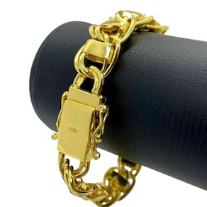 Pulseira Dubai 15mm Banhado a Ouro 18K Luxo 750 Detalhes do Produto: Material: ligas metálicas de alta qualidade, especialmente tratadas para fixação e absorção do ouro, com acabamento em verniz protetor. Aparência: visual idêntico ao ouro maciço. Produção: artesanal, com atenção meticulosa aos detalhes. Banho: 10 camadas espessas de ouro 18k, finalizadas com verniz antialérgico . Elos: soldados varia conforme o modelo . Pedras: zircônias brilhantes cravejadas quando aplicável . Tamanhos Disponíveis: Cordões Masculinos: 70cm padrão e 60cm sob consulta/Pedido Via Chat . Cordões Femininos: 50cm padrão e 45cm sob consulta/Pedido Via Chat . Pulseiras: 21cm padrão ; tamanhos de 18cm a 23cm sob consulta/Pedido Via Chat. Pingentes: conforme imagens; consulte para mais detalhes via chat. Espessuras Recomendadas para Cordões / Pingentes: P: 1mm a 4mm M: 4mm a 8mm G: 6mm a 13mm Gg: 12mm a 18mm Incluso na Compra: Saquinho de organza para armazenamento seguro. Caixa elegante, perfeita para presente. Cupom de desconto para a próxima compra. Flyer com outros produtos da coleção. Carta de agradecimento personalizada. Adesivo da marca ToJoia18k. Informações Adicionais: : 6 meses termos acompanham o produto . Devolução: 7 dias para devolução sem questionamentos. Envio: despacho em até 24 horas úteis após confirmação do pagamento. Cuidados com a Peça: Evite contato com produtos químicos; aguarde o perfume secar antes de usar. Evite contato com shampoo, condicionadores e suor excessivo. Armazene em local seco, preferencialmente no saquinho de organza fornecido. Uso no mar e piscina é permitido; lave com água corrente e sabão neutro após. Por que Escolher a ToJoia18k Semi-joias luxuosas que combinam estilo, qualidade e sofisticação. Banho espesso de ouro 18k, garantindo brilho duradouro e acabamento impecável. Design exclusivo e produção artesanal, perfeitos para qualquer ocasião. Materiais premium que asseguram durabilidade. Ao escolher uma semi-joia ToJoia18k, você investe em qualidade, elegância e uma experiência única. Aguardamos sua compra Observação: pode ocorrer variação no fecho raramente . Imagens reais, sem edição. Qualquer dúvida, estamos à disposição para esclarecimentos. Marca: Não Informado Ean: 7895433238204