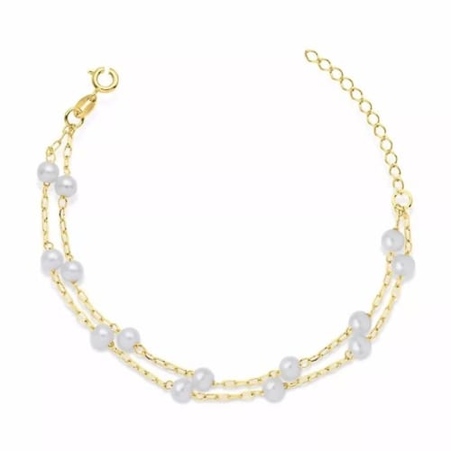 Pulseira Dupla Pérola Folheado a Ouro 18k