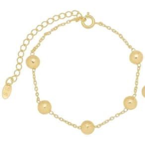 Pulseira e Brinco Bola Banhado a Ouro 18k 8954 Conjunto: pulseira e brinco com bola 6mm; pulseira medindo 16cm mais 5cm de extensor regulável com 5 bolas.