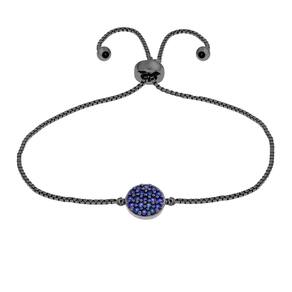 - Tipo de item: pulseira- - Tipo de metal: latão- - Cor do metal: preto- - Revestimento de metal: ouro preto 18k- - Tipo de pedra: CZ- - Cor da pedra: azul- - Forma da pedra: redonda- - Contagem de pedras: 20- - Fecho: slide- - Comprimento da joia: 229 mm- - Largura da joia: 1 mm- - Altura da joia: 2 mm- - Menor ajuste: 2,5 polegadas- - Maior ajuste: 9 polegadas-
