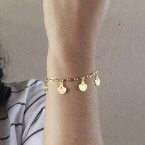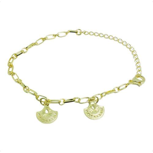 Elegante Pulseira Elo Fígaro com Leques Semijoia Banho de Ouro 18K. As peças recebem um tratamento hipoalergênico, pensando especialmente em nossos clientes, embalado individualmente com embalagens personalizadas preparado com muito carinho acompanhado pelo certificado de garantia. Perfeito para embelezar e completar seu estilo com delicadeza e sofisticação. Confira as dimensões: Altura: 0,1 cm , Largura: 1 cm , Comprimento: 22,5 cm , Peso: 3 g