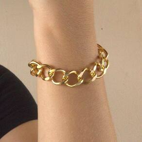 Elegante Pulseira Elo Groumet Grande Metal Dourado . Embalado individualmente com embalagens personalizadas preparado com muito carinho para nossos clientes. Perfeito para embelezar e completar seu estilo com delicadeza e sofisticação. Confira as dimensões: Altura: 0,3 cm , Largura: 1,5 cm , Comprimento: 25,5 cm , Peso: 12,7 g
