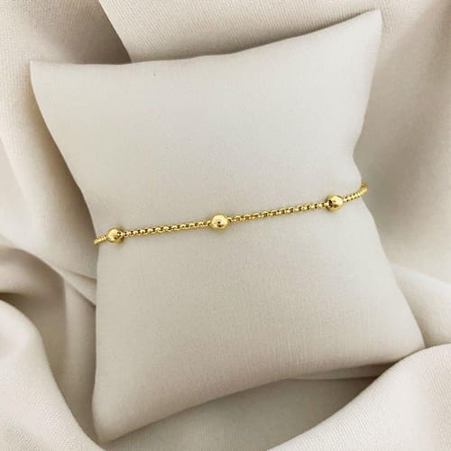 Pulseira Elo Português com Bolinhas Banhado a Ouro