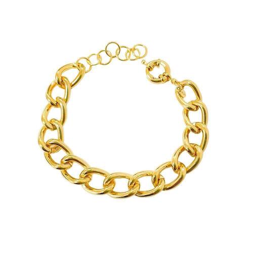 Pulseira Elos Ocos Banhado A Ouro 18k Pulseira Elos Ocos Banhado a Ouro 18k 18cm - Você merece mais do que apenas uma pulseira. Merece uma declaração de estilo que se destaque, uma joia que exala imponência e sofisticação. Apresentamos a nossa pulseira de elos largos e ocos banhada em Ouro 18k, com o exclusivo fecho Boia.