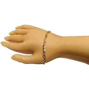 Pulseira Em Ouro Elos Laminados Grandes 16 cm Unissex é todo feito com Ouro 10k 416Elos em Ouro amarelo 5,0 mm x 9,0 mm1 peçaPeso de 2,2 gramasAcabamento PolidoPeça em ouro maciçoItens InclusosPulseira Em Ouro Elos Laminados Grandes 16 cmSaquinho AveludadoNota Fiscal integral no nome do compradorProduto com garantia eterna do ouro 10k