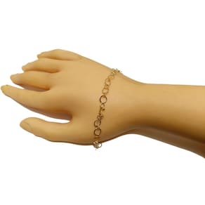 Pulseira Em Ouro Elos Laminados 20 cm Unissex é todo feito com Ouro 10k 416Elos em Ouro amarelo diâmetro 5,0 mm1 peçaPeso de 2,4 gramasAcabamento PolidoPeça em ouro maciçoItens InclusosPulseira Em Ouro Elos Laminados 20 cmSaquinho AveludadoNota Fiscal integral no nome do compradorProduto com garantia eterna do ouro 10k