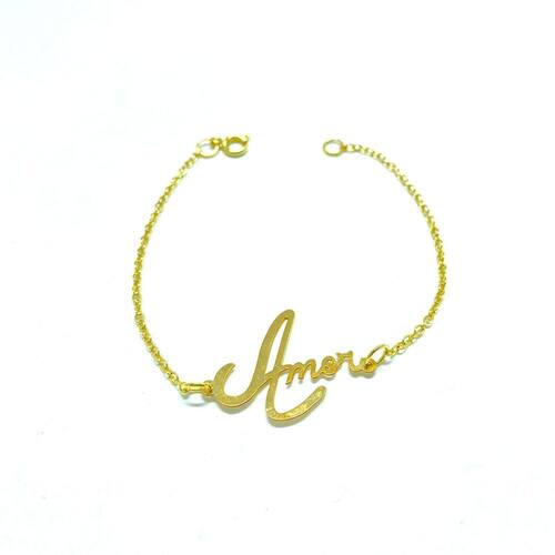 DESCRIÇÃO: Pulseira folheado a ouro escrito Amor, essa peça foi escrita a mão e passada pela computador para dar um efeito diferente, dando um ar único e exclusivo para a pulseira, são peças atemporais e muito versáteis. O colar possui um design delicado e romântico, é um acessório desenvolvido para mulheres que gostam de estar deslumbrante independente da ocasião. É a responsável por dar charme e sofisticação para o visual, combinando com qualquer estilo DADOS TÉCNICOS: Tamanho de 21cm CARACTERÍSTICAS: Qualidade premium, banhado e desenvolvido com alta tecnologia que garante maior durabilidade e acabamento impecável. Tornando-se um diferencial no mercado. COMPOSIÇÃO: Confeccionado com principal matéria prima uma liga de metais nobres chamada Zamac zinco, magnésio, alumínio, cobre direto da fonte 100% pura que recebe o banho decorativo de ouro 18k em solução. Procedimento galvânico totalmente automatizado com brilho inigualável. Aplicação de verniz inovador de última geração. Garantindo excelência e alto padrão de qualidade em todas as peças. : de 3 meses. Validação da compra. A não cobre defeitos causados por mau uso. DICAS ÚTEIS A Farida Nesi Design oferece a melhor qualidade de acabamento. Cuidados simples preservam a beleza de suas joias por muito mais tempo. Para manter o brilho e qualidade que não use durante o banho, prática de esportes, ou atividades domésticas. Evite contato com água, e produtos químicos. Não passe perfume ou outros produtos sobre a peça. Limpe com uma flanela seca e macia. Guarde com cuidado. Todas as peças acompanham mini sacos ideais para serem armazenados. Compre agora Marca: Não Informado Ean: 7899472400271