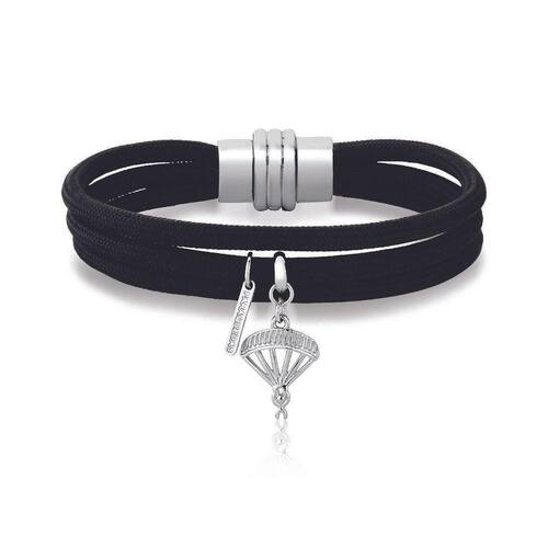 A VL accessoires traz a Pulseira Esportes Radicais Revestida em Metal Prateado, desenvolvida e elaborada com o Paracord, a corda que é usada nos Paraquedas! Sinta essa Versatilidade e Elegância, para ser utilizada em todas as ocasiões. Produto Unissex.