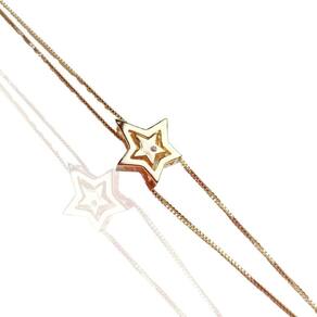 A pulseira estrela banhada a ouro 18k é uma peça elegante e delicada, perfeita para quem busca um acessório sofisticado e discreto. Com duas correntes finas, apresenta uma estrela de 20x15mm como destaque central. O tamanho é ajustável, com 16 cm + 5 cm de extensor, garantindo conforto e versatilidade. O banho em ouro 18k confere brilho duradouro e qualidade, ideal para complementar qualquer look com um toque de charme e modernidade. de 3 meses no banho e cravação das pedras mediante a defeitos de fabricação e não mau uso pelo cliente Caso aconteça um desgaste do banho, mudança de coloração, a peça será submetida a teste para averiguar se foi problema de fabricação ou mau uso. Nosso banho é denominado hipoalergênico pois não contém niquel na composição Marca: Não Informado Ean: 7794394964767