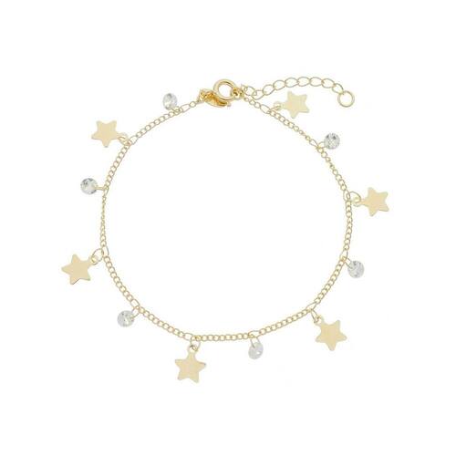 Pulseira Estrela com Pontos de Luz Banhada a Ouro 18k 9067 Pulseira: com 6 estrelas e 6 pontos de luz em zircônia cristal, medindo 18cm + 3cm de extensor ajustável Banhada a Ouro 18k Banho Hipoalergênico SEM NÍQUEL um dos maiores causadores de alergia Altíssimo padrão de qualidade de 1 ano no banho Marca: Não Informado